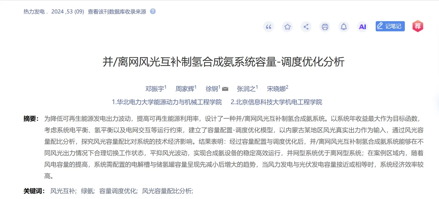 [1]邓振宇,周家辉,徐钢,等.并/离网风光互补制氢合成氨系统容量-调度优化分析[J].热力发电, 2024, 53(9):136-146.