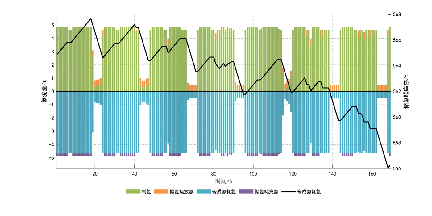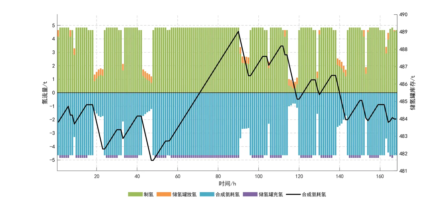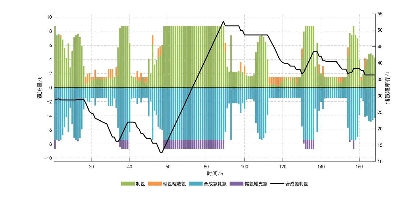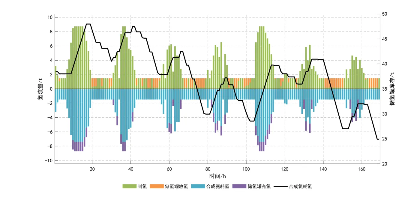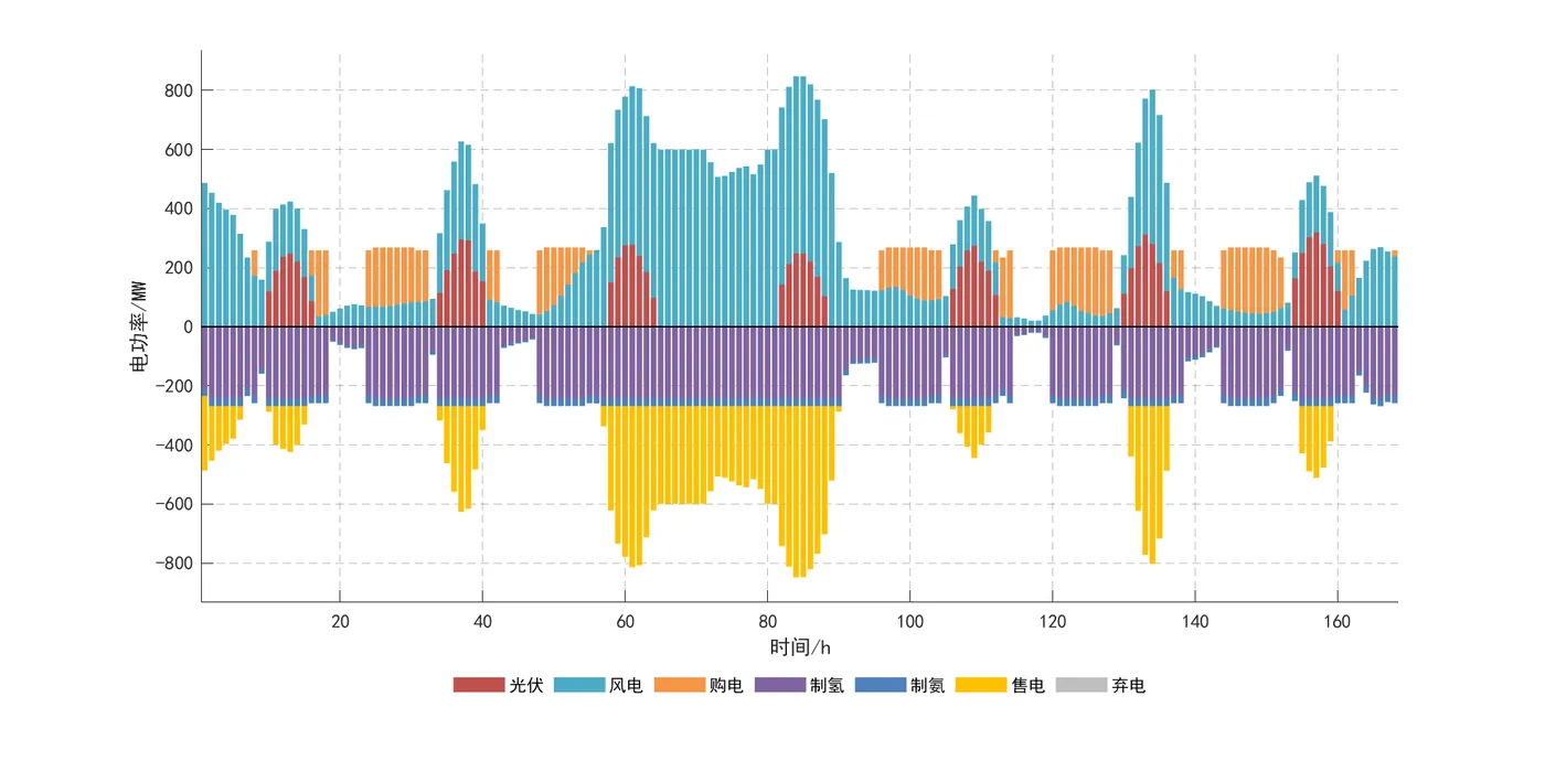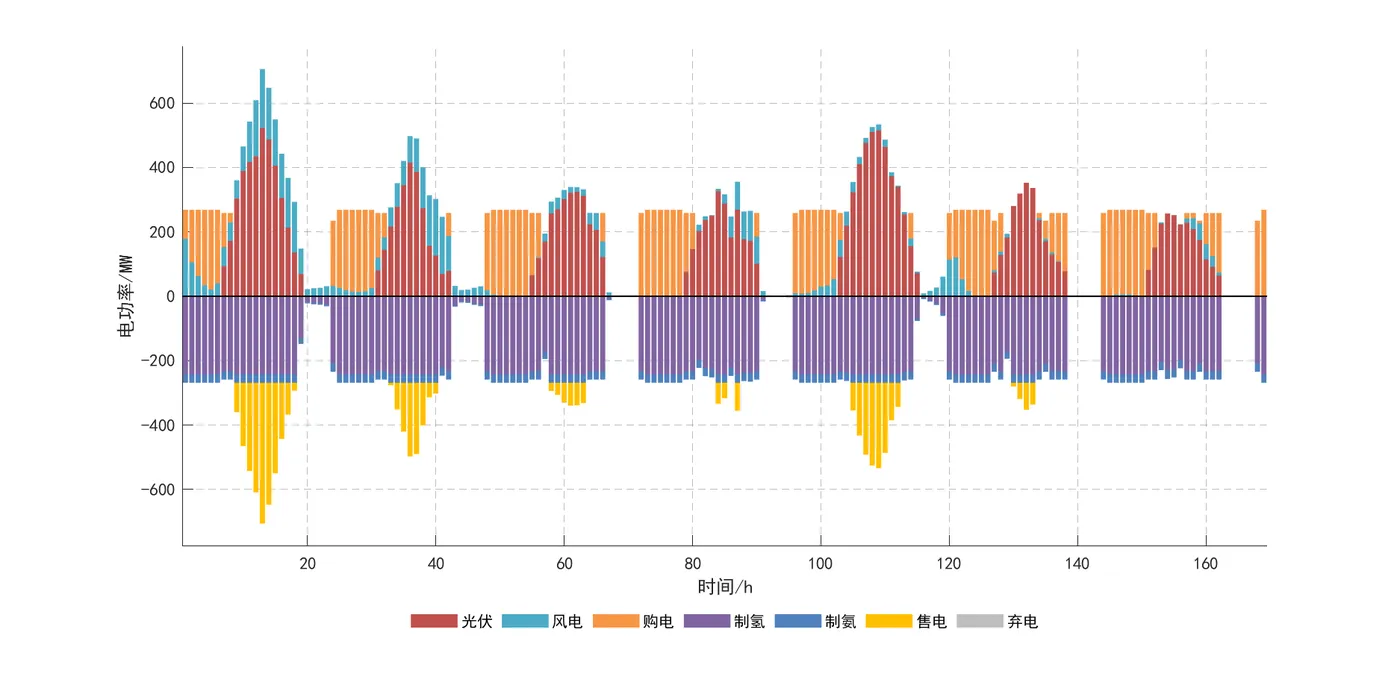 1)所构建的并/离网风光制氢合成氨系统,在历经各设备科学合理的容量配置后,展现出了良好的经济性。同时,借助系统运行调度优化分析,该系统能够在风光出力条件各异的情况下,灵活且合理地切换工作状态,确保合成氨设备实现稳定、持续的生产作业,并显著提升了可再生能源的利用效率。
