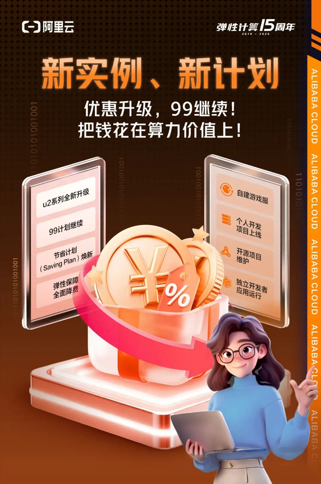 现在,u2系列提供更高性价比与硬件级容错;ECS节省计划绑定真实负载、弹性保障费率低至10%;“99计划”持续两周年,普惠云计算已服务超80万开发者,不少学生朋友也拥有了人生的第一台云服务器,让每一位开发者都能把预算花在算力价值上。