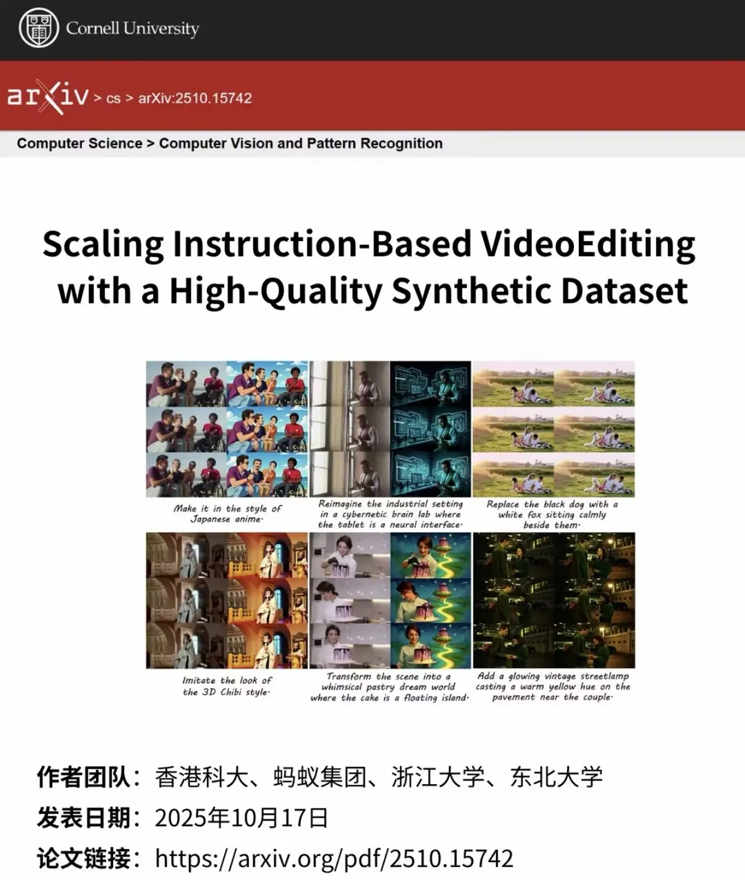 论文标题:Scaling Instruction-Based VideoEditing with a High-Quality Synthetic Dataset