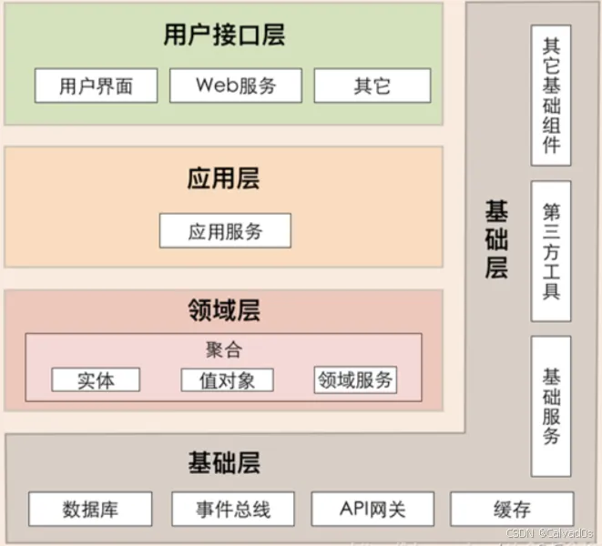 - 领域驱动架构:DDD中有一套自己的架构分层,将应用程序划分为四个层次,包括应用层、领域层、基础设施层和用户接口层,以实现业务领域的清晰分离。
