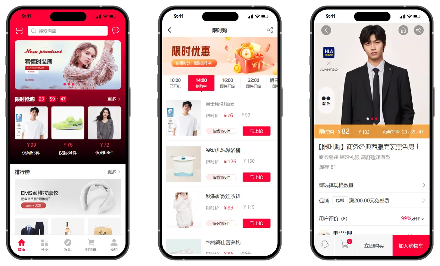 搜索筛选功能强大,用户可以根据关键词、价格区间、品牌等多种条件进行筛选,快速找到自己心仪的商品。商品详情页设计细致入微,不仅展示了商品的详细信息、高清图片,还提供了 SKU 选择、价格展示、评论模块等功能。用户可以方便地查看商品的规格、颜色、尺寸等信息,了解其他用户的购买评价,从而做出更加明智的购买决策。此外,收藏与分享功能让用户可以轻松收藏喜欢的商品,并与朋友分享购物心得。