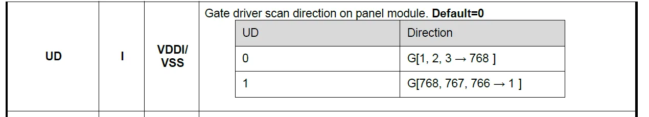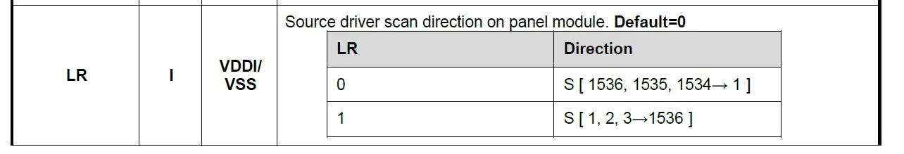 使用DCS指令 R36=00/01/02/03可实现4个方向控制,即正扫、正扫+镜像、反扫、反扫+镜像