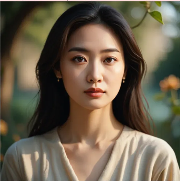 用简单提示词生成第一张图片:“a portrait of a beautiful Asian woman”。