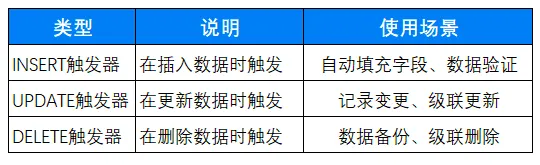 💡 触发器 = 数据库的"自动触发器",事件发生时自动执行预定义操作!