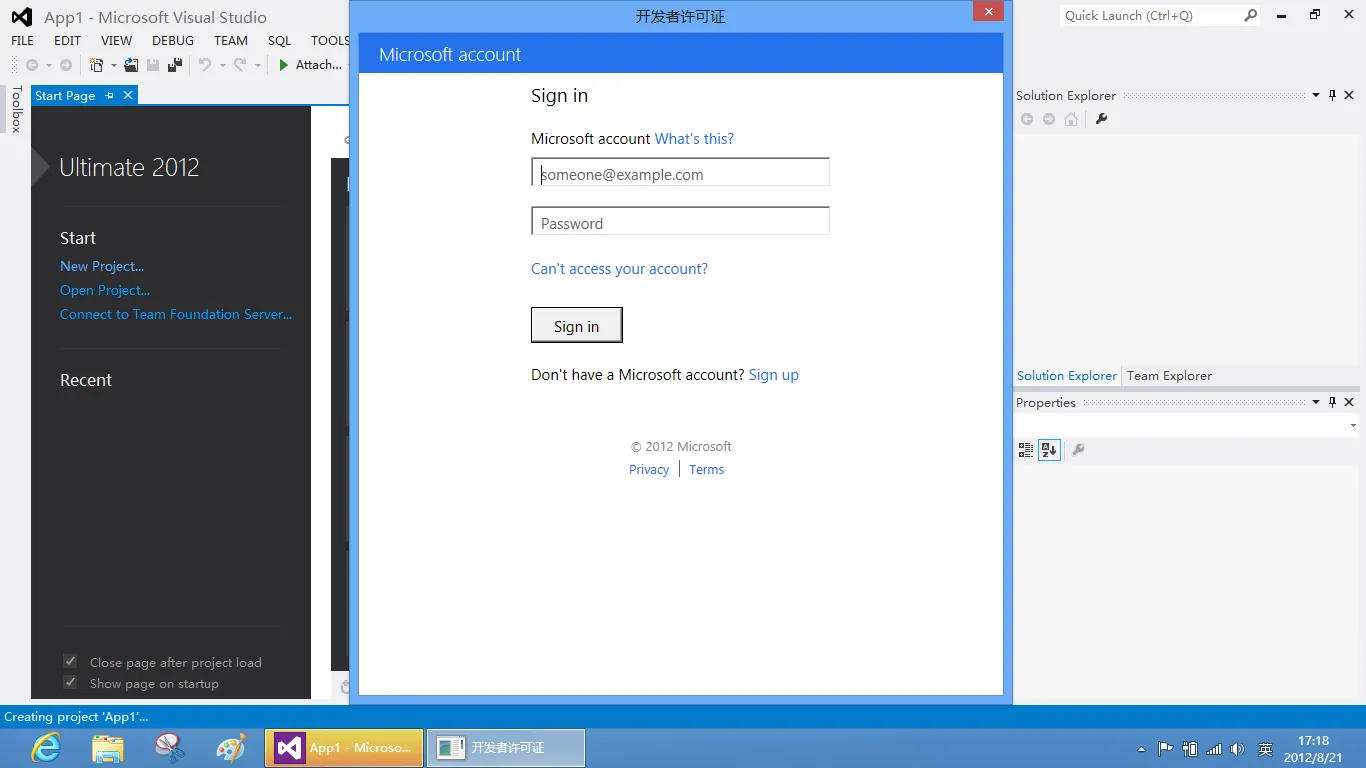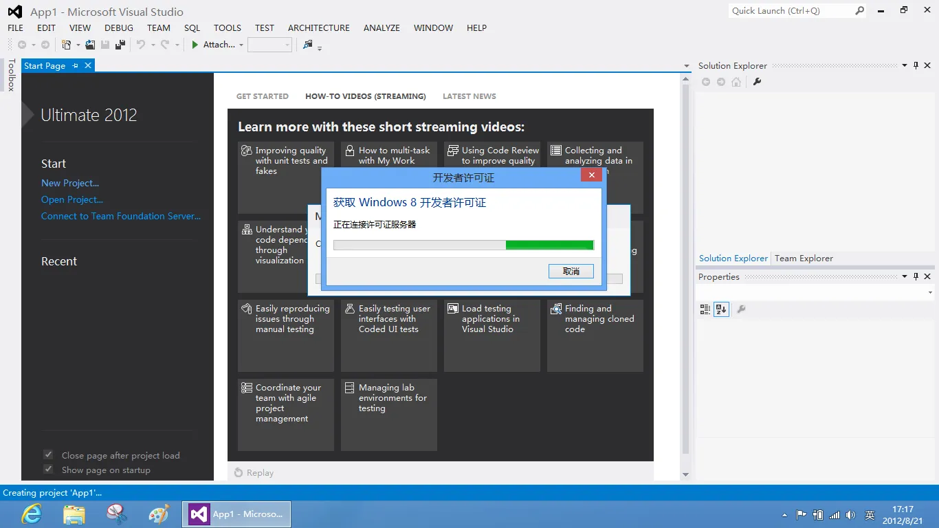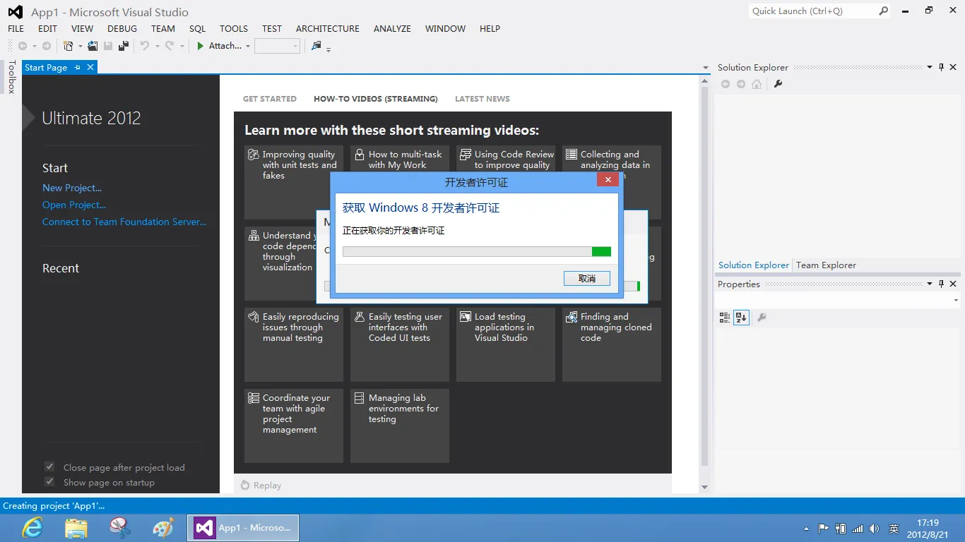 步骤8:Visual Studio 2012初始化启动中,此过程需要几分钟