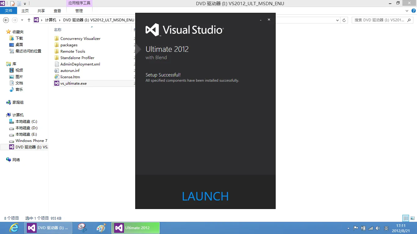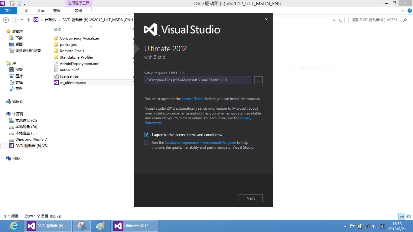 最后我想通过图例的形式,向大家演示如何安装Visual Studio 2012。另外我们安装Visual Studio 2012同时会自动安装Expression Blend for Visual Studio 2012开发工具。