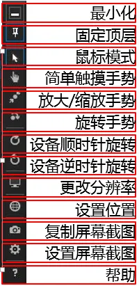 我们启动模拟器后,可以在模拟器的右侧看到一排的功能按钮,这些功能按钮具体是什么呢?如下图所示: