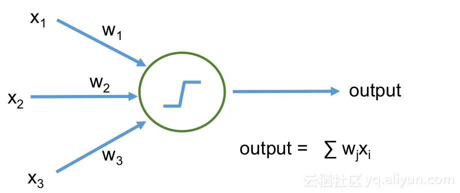 上图是一个简化的神经元连接示意图。神经网络中的每个神经元接收与之连接的其它神经元的输入信息(Xi),然后通过计算后输出到网络中的其它神经元或节点。神经元之间的连接参数用权重(Wj)表示,权重的大小表示二者连接的强度,权重的值可正可负。将所有的输入信息都与对应的连接权重相乘(X1W1,X2W2等)并进行求和作为该节点的输出。最后一步是对神经元执行计算或激活函数处理。激活函数允许人工神经网络模拟简单模式无法正确表示的复杂的非线性问题,常用的激活函数是Sigmoid函数。