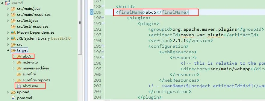 方式二: 使用finalName 指定war包名称 :