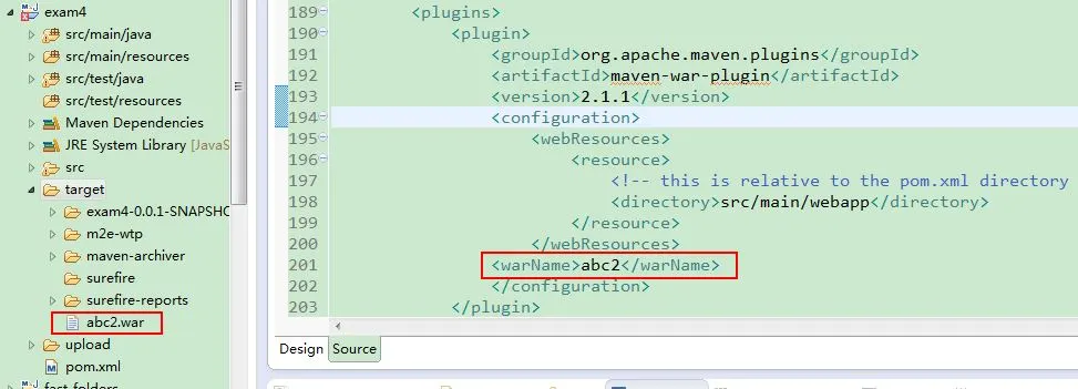 默认的war名称是构件ID加上版本号,例如: