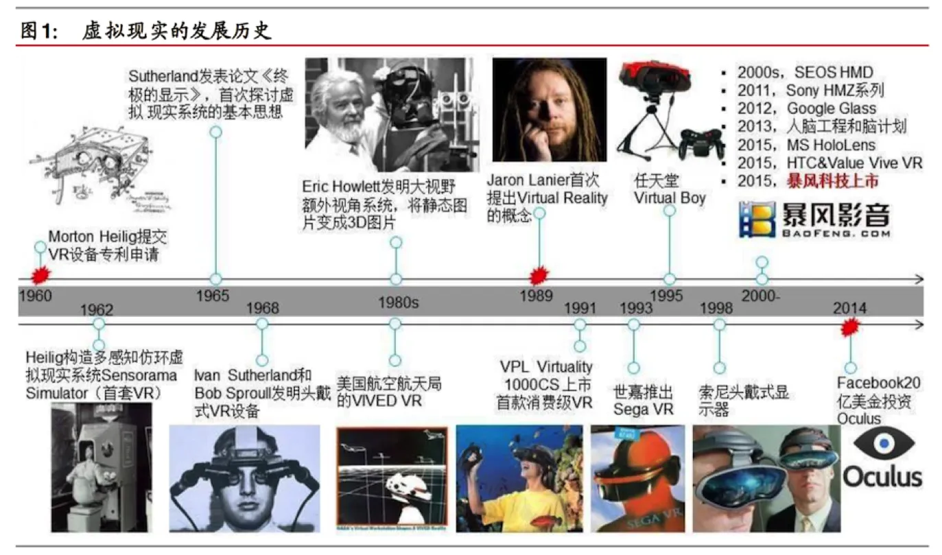 过了一些时候,虚拟现实技术开始爆发,其速度之快让你措手不及。它是人类目前能看的最近的一次媒体变革。既计算机时代 - 互联网时代 - 移动互联时代后,下一代人机交互平台。人类人机交互从第二维度进化至第三位维度。据 kzero 公司分析 ,2018 年全球虚拟现实用户将突破 2 亿人,从而诞生一个万亿级的巨大市场。接下来说一说VR发展历史,其发展历史蛮悠久的,这里向各位举几个比较典型的历史事件。