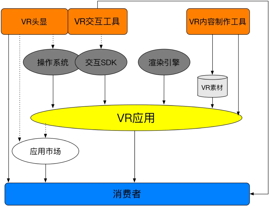 VR/AR系统包括:头显、交互工具、内容制作工具、操作系统、渲染引擎和VR应用等,行业覆盖了硬件、系统、平台、开发工具、应用以及消费内容等诸多方面,还未完全成熟的产业,产业链还比较单薄, 内容提供方比较少。