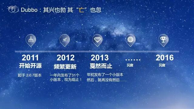 从时间线上来看 dubbo 的崛起和兴盛,犹如流星划过夜空.
