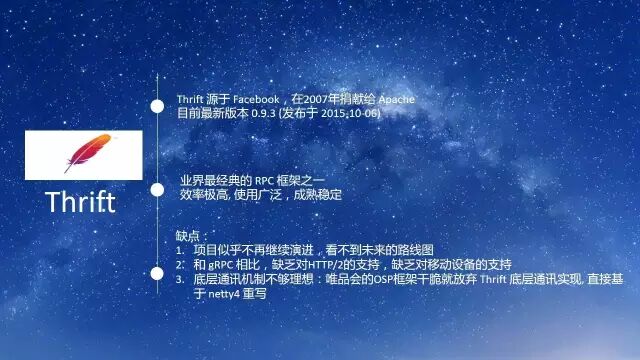RPC框架,业界数得上数的大概有十几种,这里只详细介绍三种,分别代表老中新三代RPC框架。