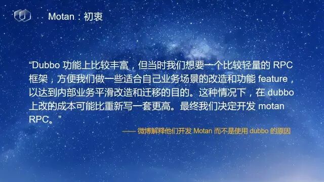 发现每个服务化框架出来,都要被问一个问题:为啥你们不直接用 dubbo 呢? Motan也未能免俗 :)