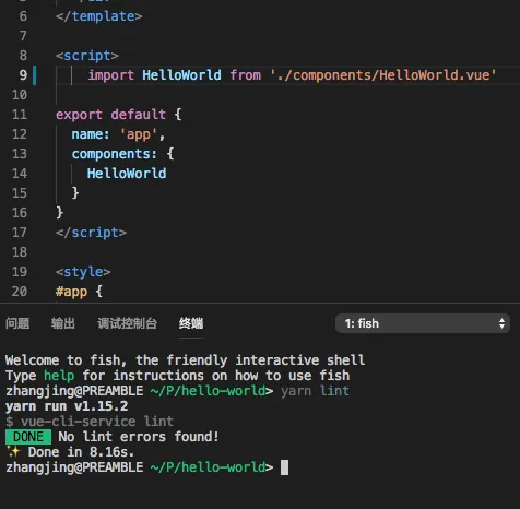 已经能够起作用了。它不但能把我们多余插入的空格删掉,并且能按照规则把双引号变成单引号,把行尾多余的分号删掉。当然,关于行尾加不加分号这是一个哲学命题,你可以根据你个人的喜好自行决定。在这里,我们权且按照vue-cli的标配执行。