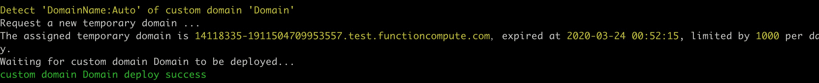 命令即可。部署完成后,即可享受到函数计算带来的弹性伸缩、按量付费、免运维等特性。