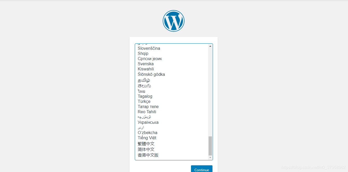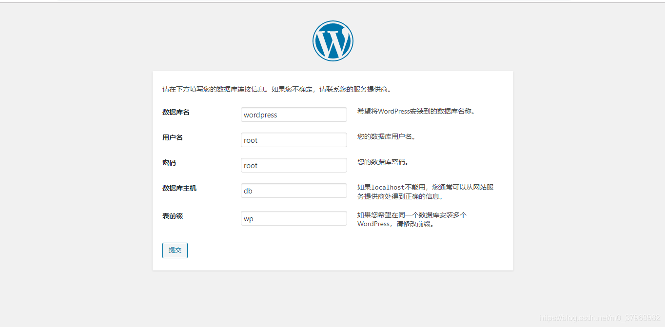 选择语言后,点击继续,出现如下页面,填写数据库信息。