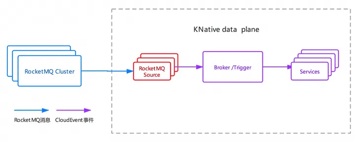 RocketMQSource 是 Knative 平台的 RocketMQ 事件源。其可以将 RocketMQ 集群的消息以 Cloud Event 的格式实时转发到 Knative 平台,是 Apahe RocketMQ 和 Knative 之间的连接器。