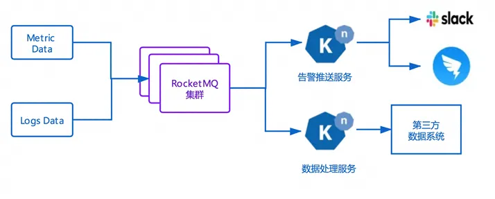 - Metric、Log 等数据通过 RocketMQ 集群推送到 Knative 服务;