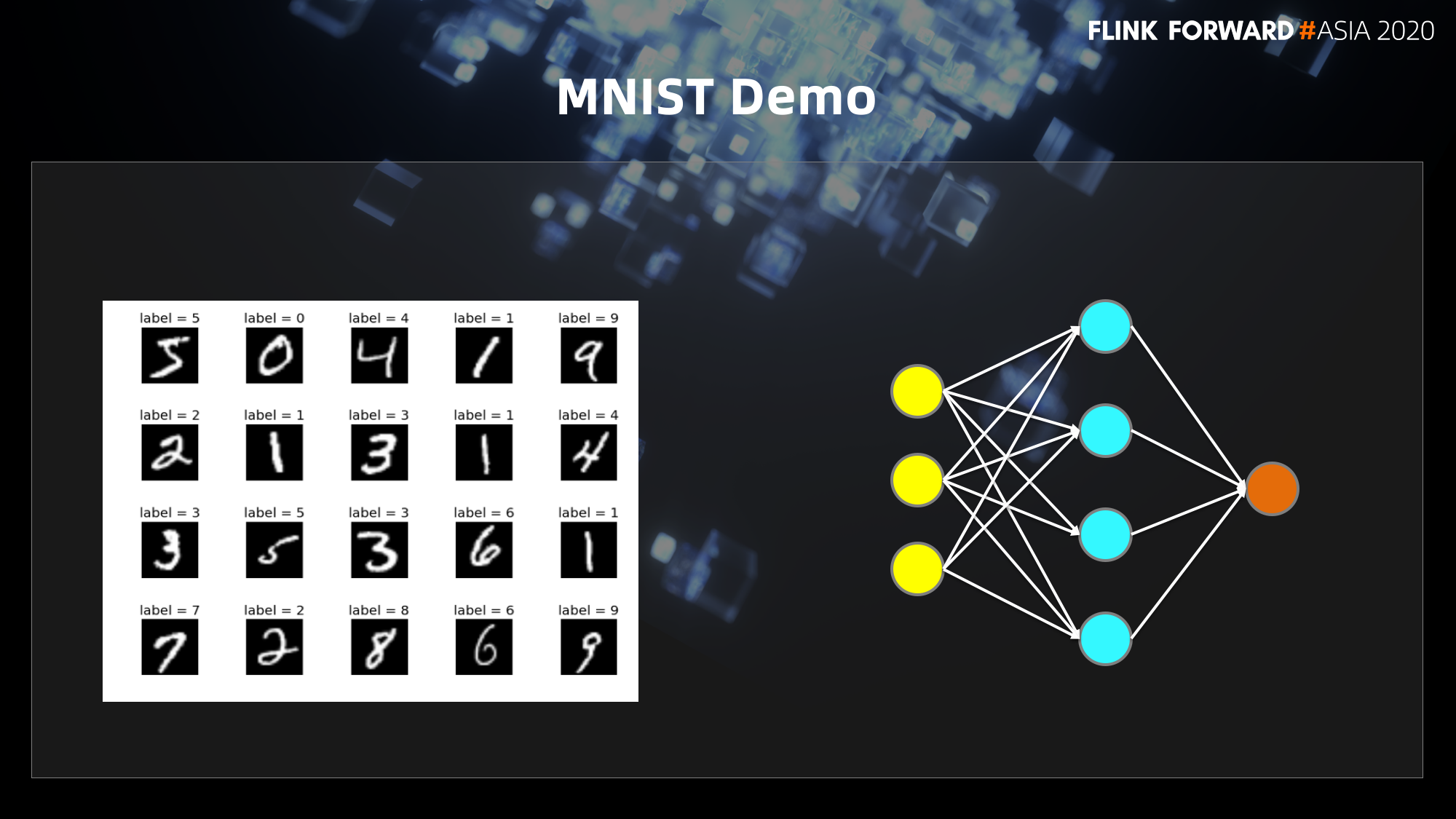 下图以 MNIST 数据集的识别任务来演示使用 GPU 加速 Flink 作业。