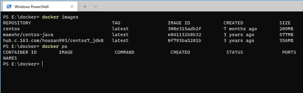 PS E:\docker> docker pull docker.io/mamohr/centos-java