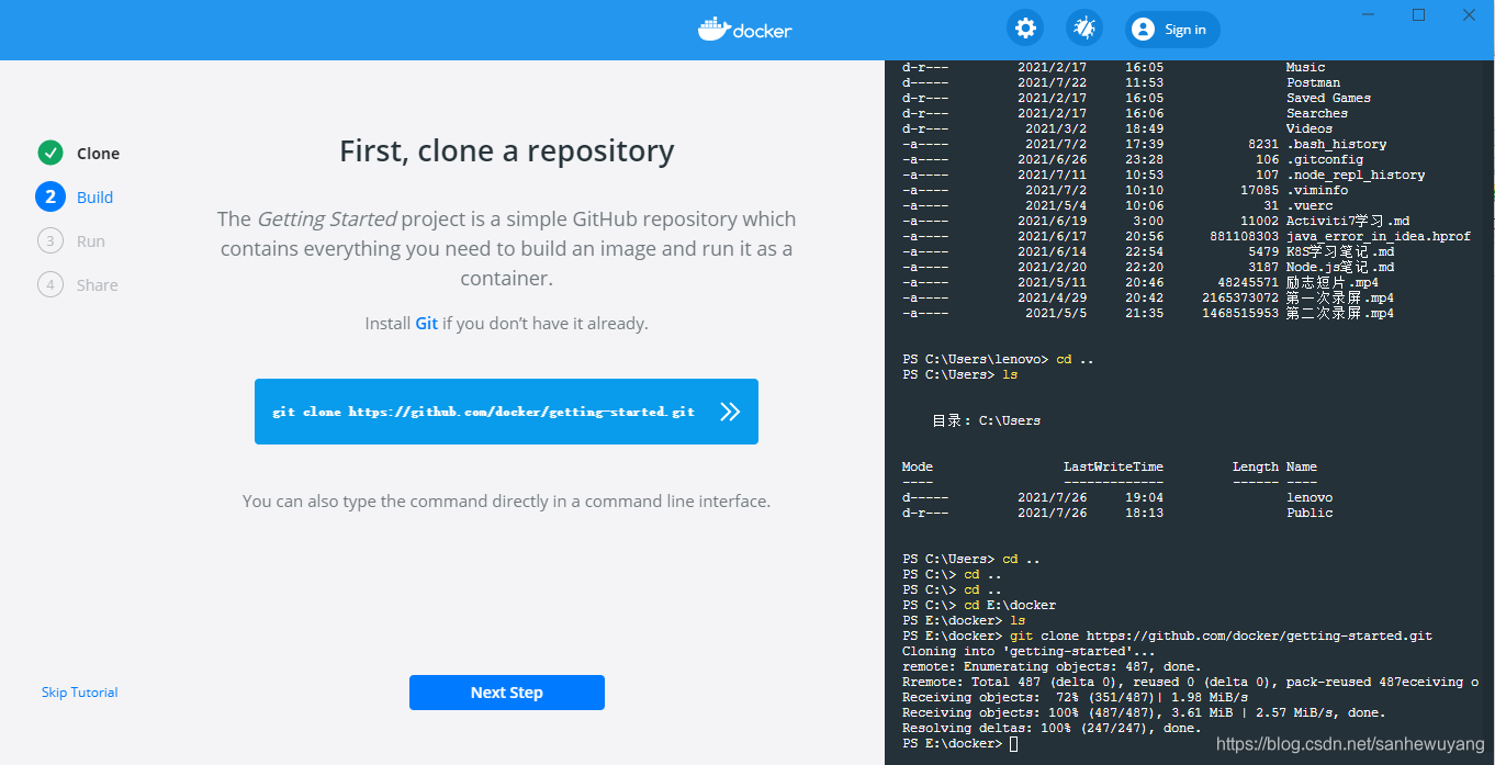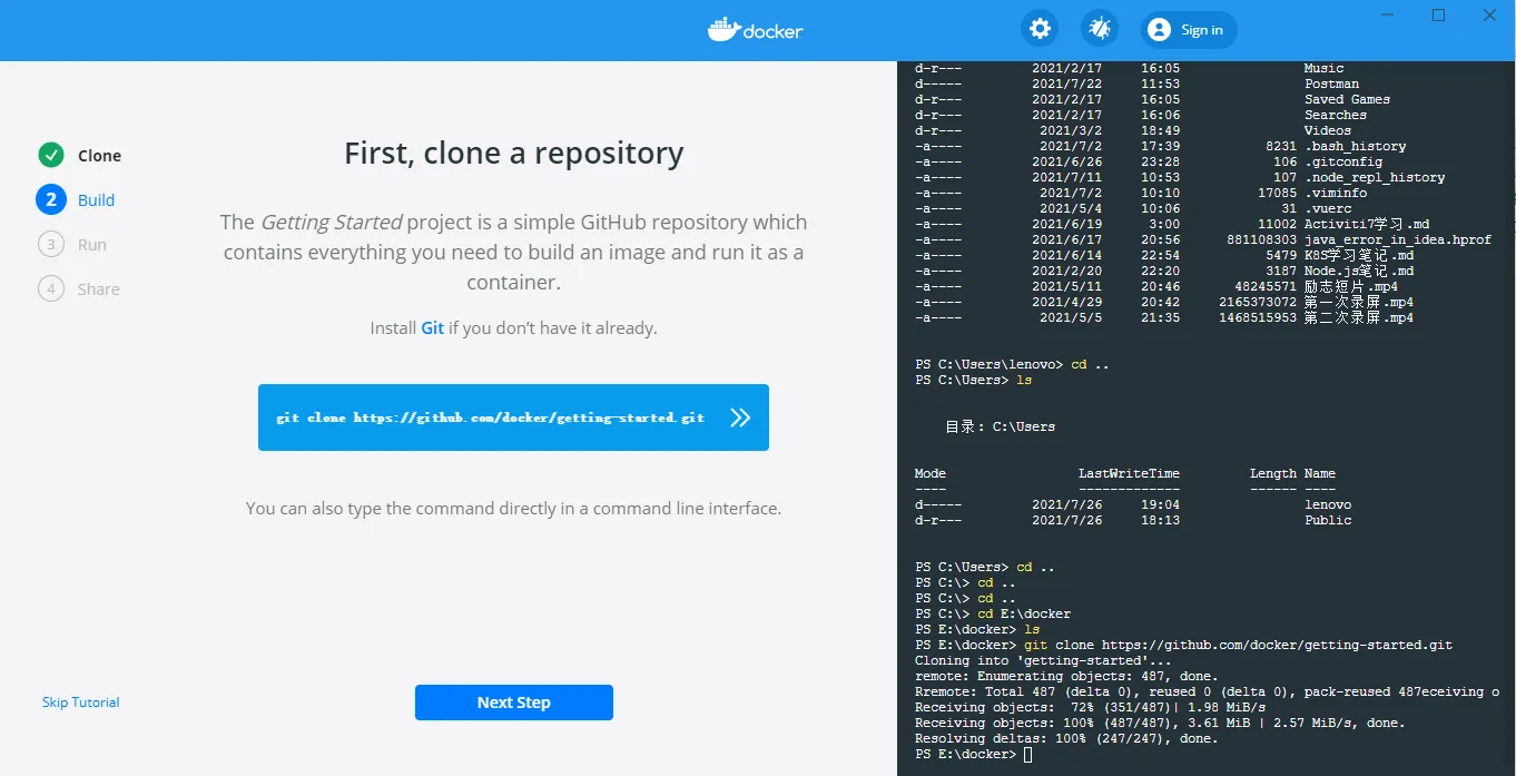 docker build -t docker101tutorial .之后启动点击restart  完成Dokcer启动