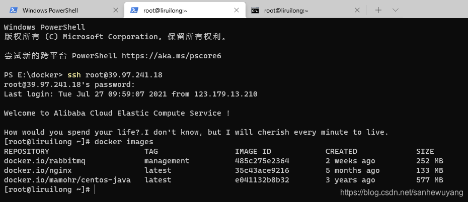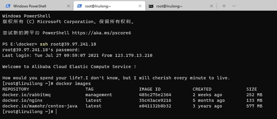 mamohr/centos-java   latest              e041132b8b32        3 years ago         577MB- 根据镜像启动容器