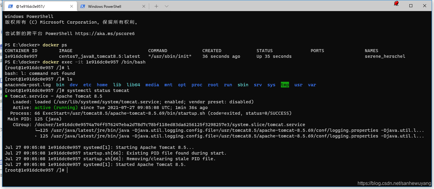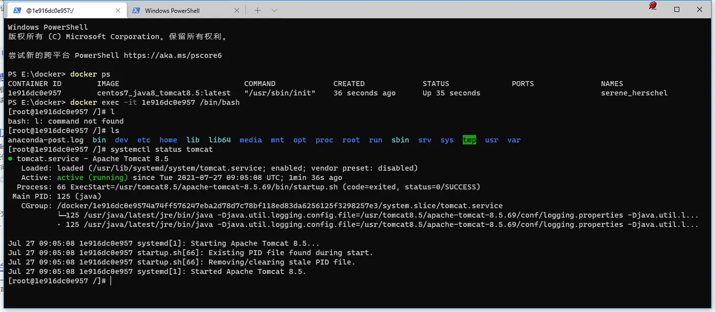 [root@cdd43dfcdf88 bin]# systemctl start tomcat