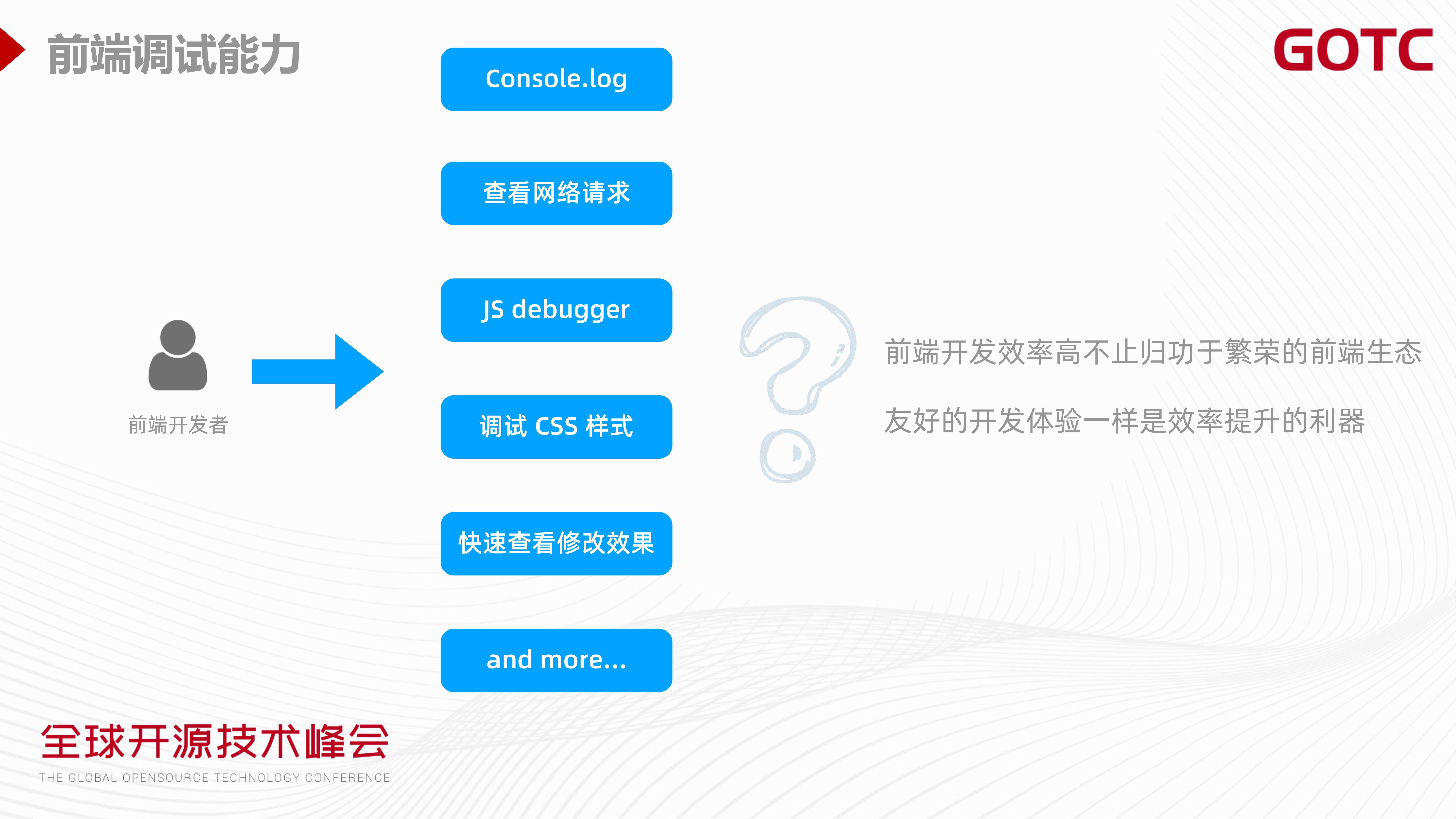 开发应用时,调试能力是必不可少的,前端开发效率高不止要归功于繁荣的生态,友好的开发调试体验一样是提升效率的神器。