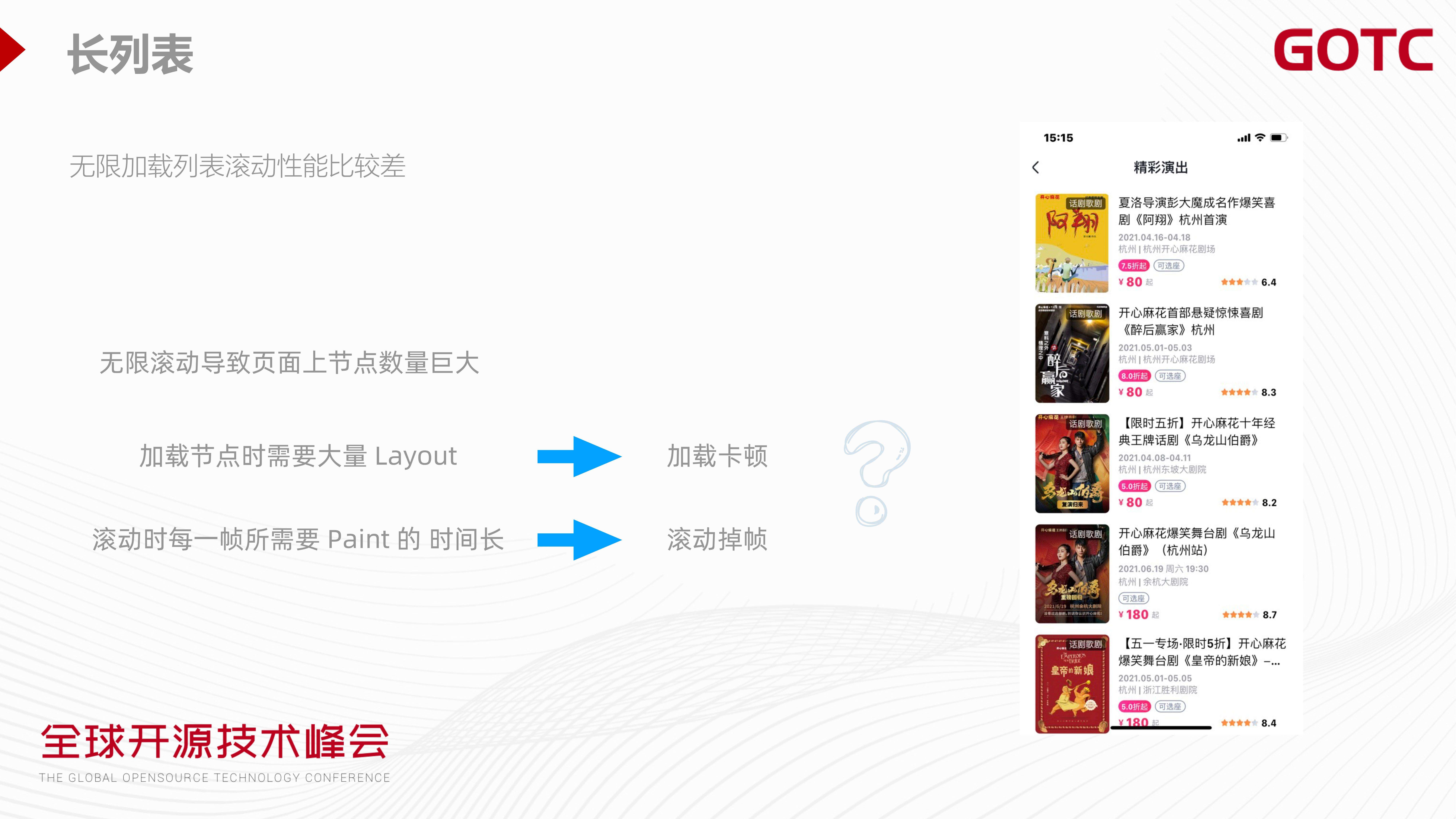 无限滚动的长列表是困扰前端开发者很久的历史性问题了,大量的 layout 导致页面卡顿,以及滚动时 Paint 的时间长导致滚动掉帧,页面的体验非常糟糕。社区也有非常多的前端的解决方案来处理该问题,而在 Kraken 上,我们也期望在容器层解决该问题。