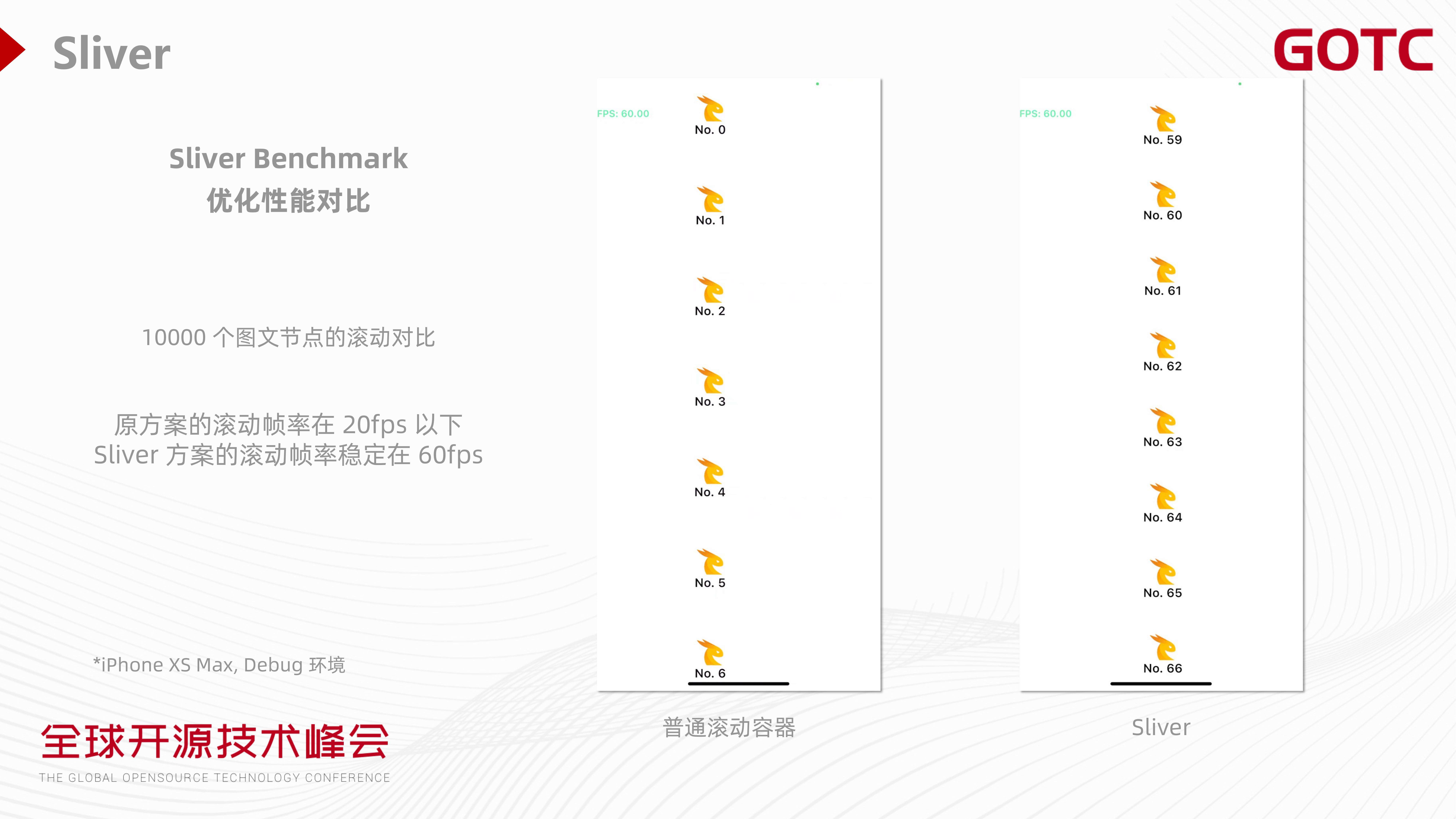 ,则可以直接使用 Flutter 的 Sliver 能力,以达到节点超出可视及缓存区域后动态回收的一个能力。可以看到我们使用 1000 个卡片的 DEMO 进行测试,sliver