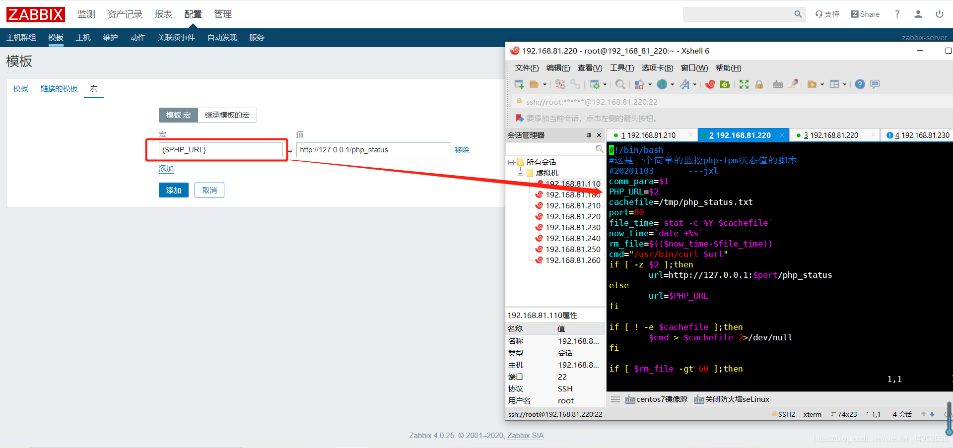 这个宏其实就是zabbix设置变量的地方,宏要对应脚本中的php_url