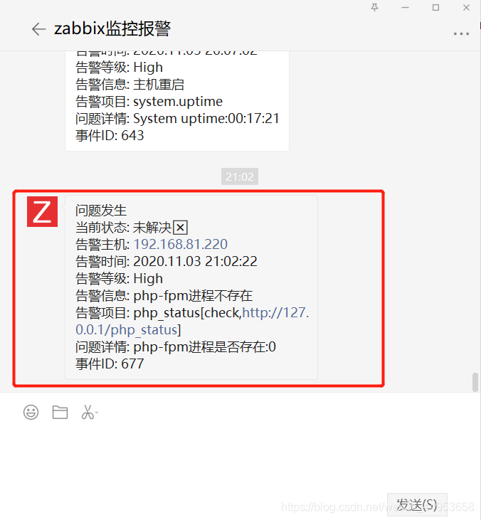 [root@192_168_81_220 ~]# systemctl stop php-fpm [root@192_168_81_220 ~]# ps aux | grep php | grep -v grep | grep -v php_status.sh | wc -l 0 进程数已经是0,坐等监控报警