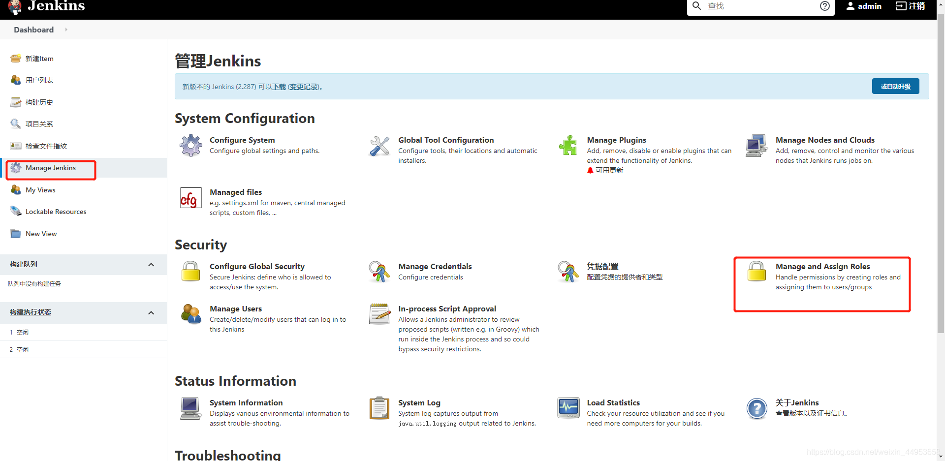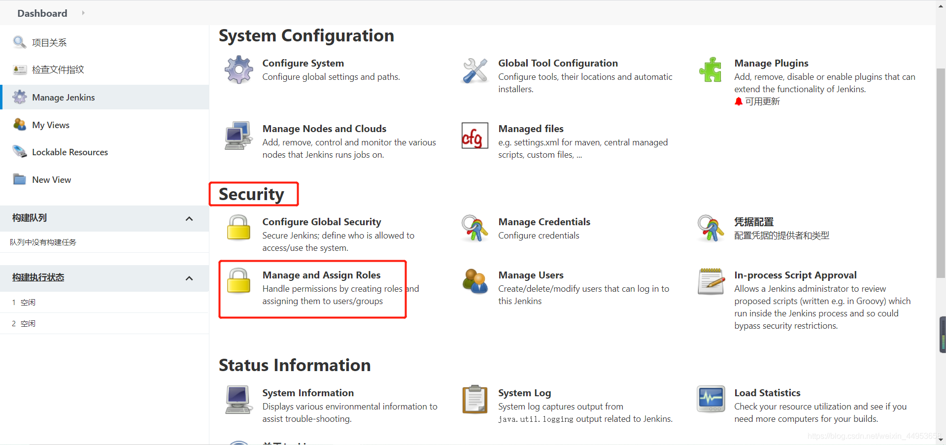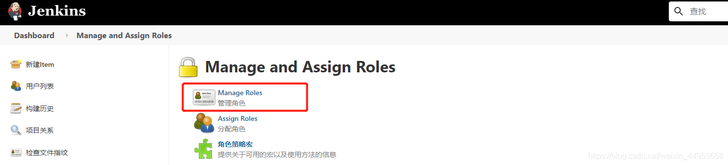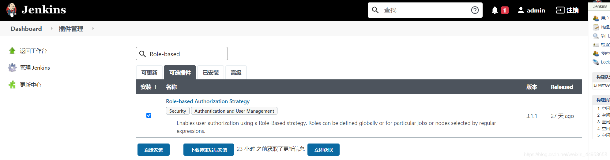 Manage Jenkins -> Manage Plugins 选择安装Role-based Authorization Strategy插件