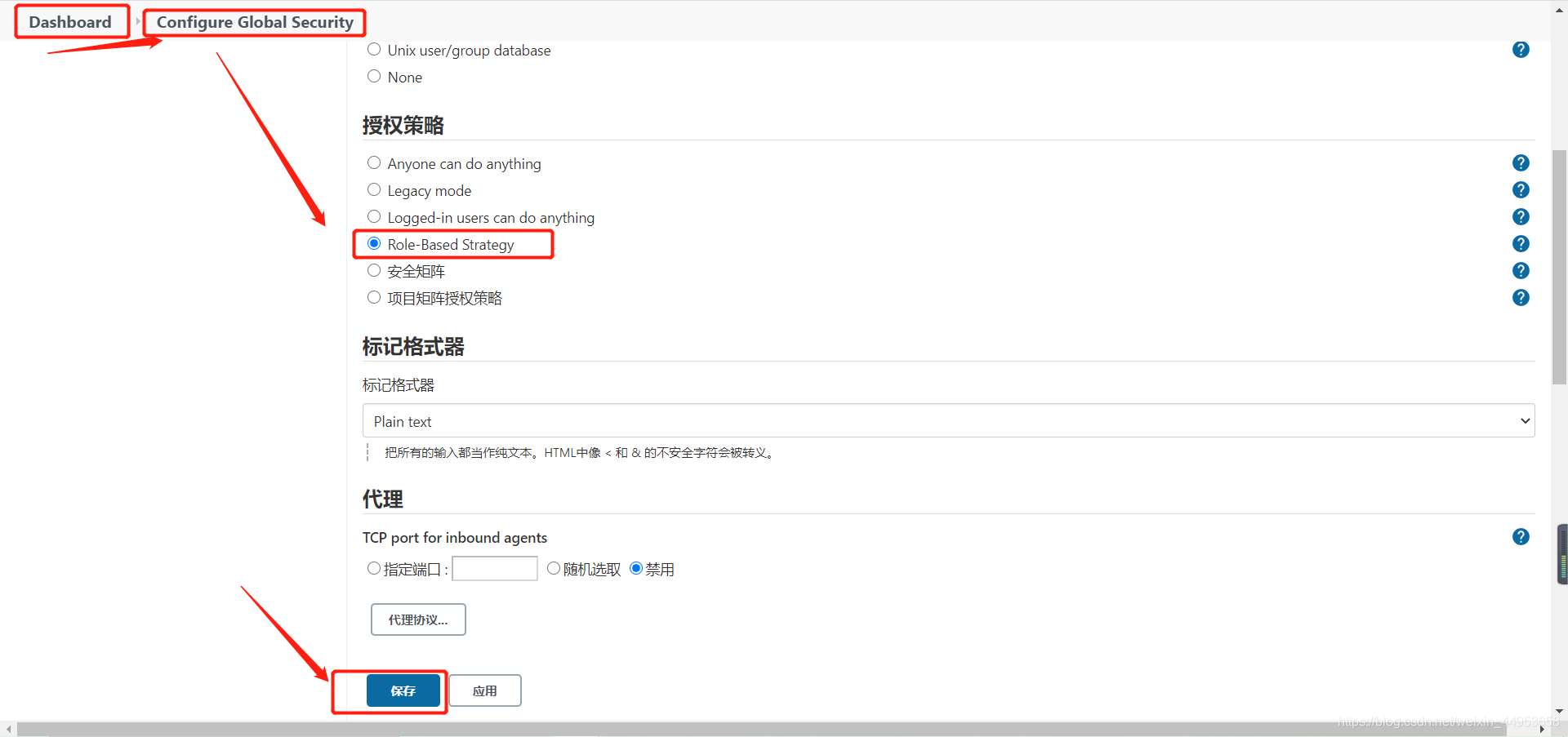 全局角色和项目角色添加完后要点击下面的save进行保存