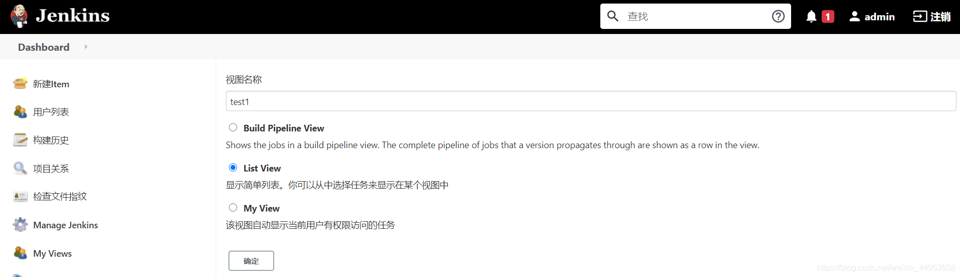 因安装了中文包的原因,语言大多以中文的方式显示,但不影响配置使用Jenkins要想以视图分配权限,需要注意一个规范:在创建视图时以项目的缩写命名再加上项目的具体名称,例如:dev_boss,dev就是项目的整体名称,boss就是其中的一个模块,这样一来我们做权限分配时,以dev开头就能匹配到所有dev的项目并且在一个视图中显示