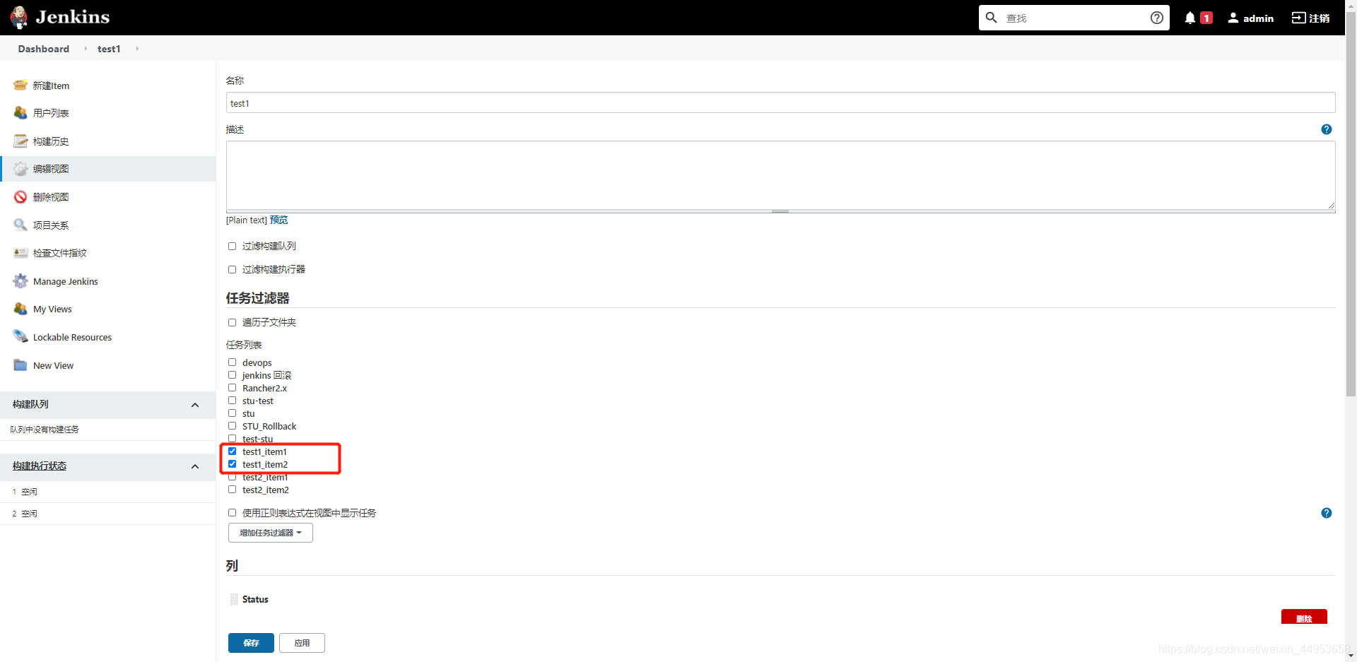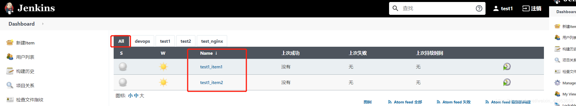 直接看all即可,可以看到只有test1开头的项目能被看到,所有视图都在这里显示,但是只能看到test1开头的项目