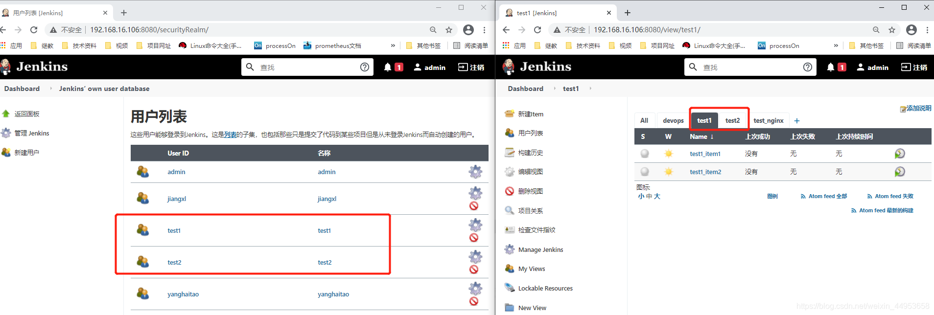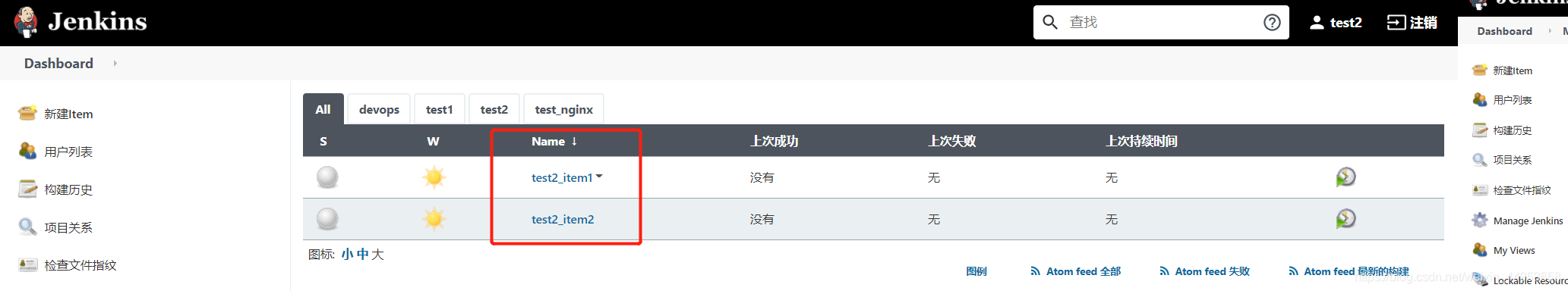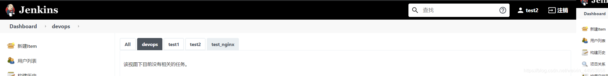 直接看all即可,可以看到只有test2开头的项目能被看到,所有视图都在这里显示,但是只能看到test2开头的项目