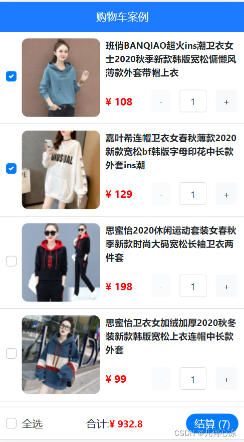 allCount(){ return this.arr.reduce((sum, obj) => { if (obj.goods_state === true) { // 选中商品才累加数量 sum += obj.goods_count; } return sum; }, 0) },