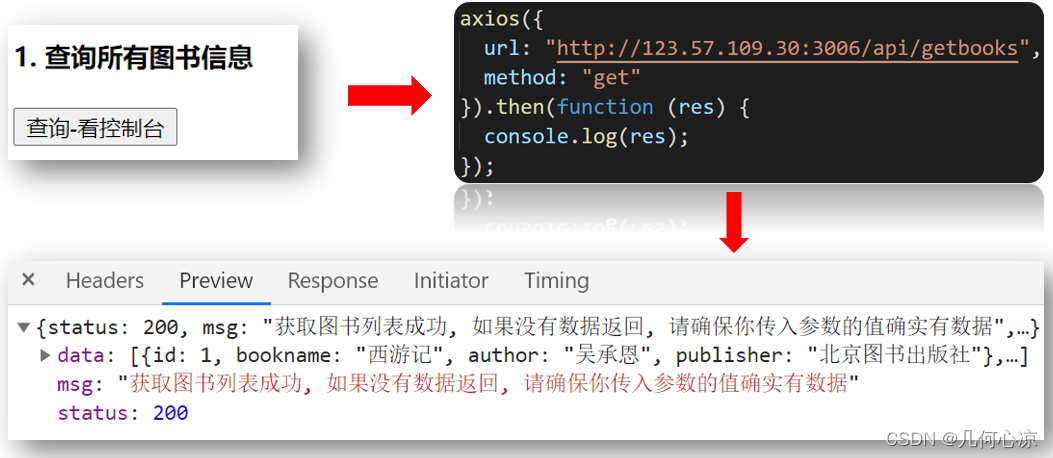 功能: 点击调用后台接口, 拿到所有数据 – 打印到控制台