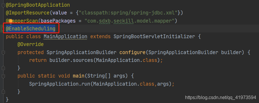 最后要让定时任务生效还需要在启动类中增加一条注解