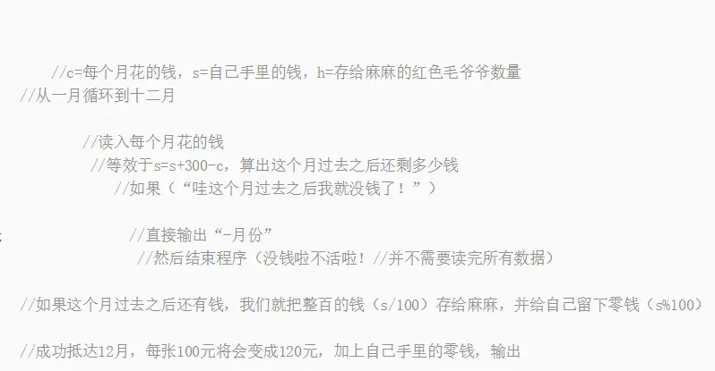 int i,budget, surplus=0,o=0;//budget每个月预算,deposit表存款,surplus表示剩余钱数