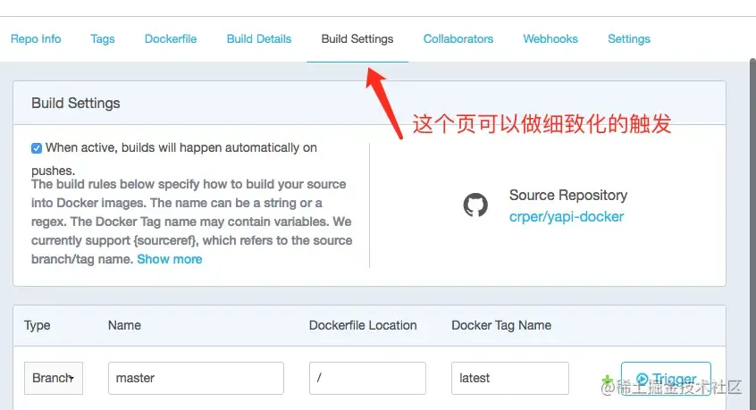 初始化可以设置那些分支会触发构建,亦或者触发endpoint来构建, 最傻瓜化的就是勾选监听push事件自动构建