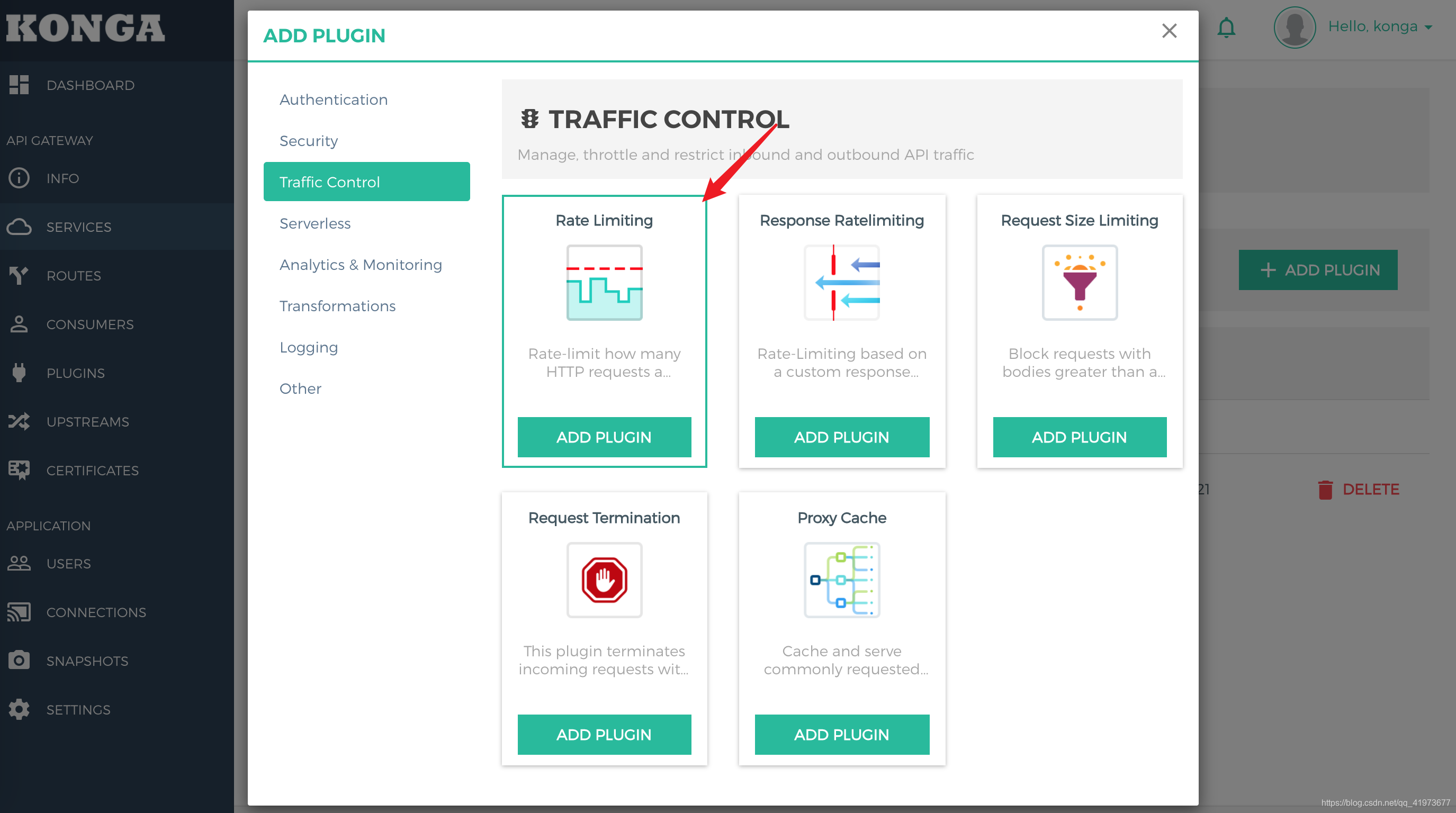 同样Kong也是通过组件来实现限流操作的