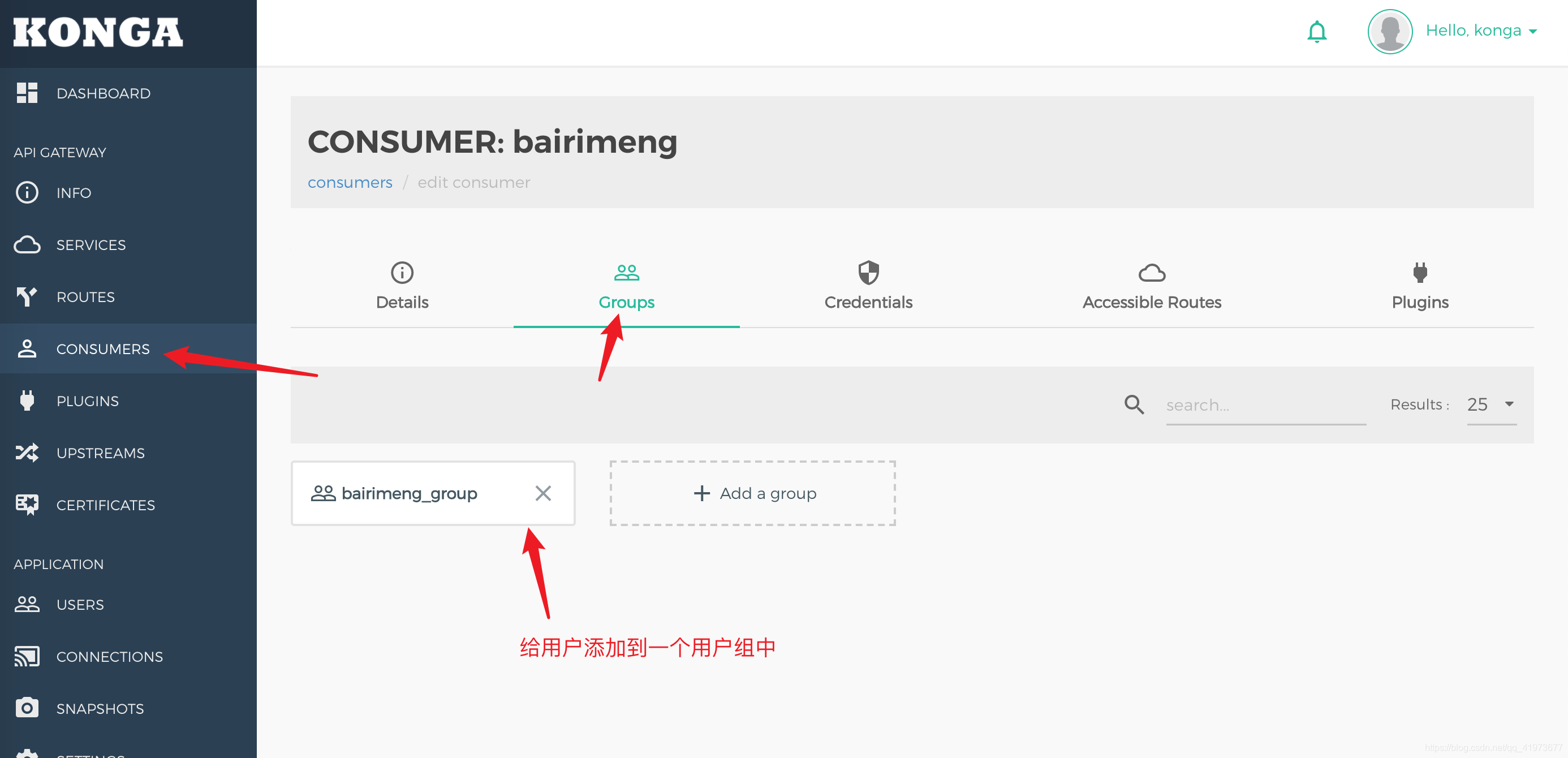 想正常访问接口,需要将consumer加入到上面的whitelist指定的用户组中,如下: