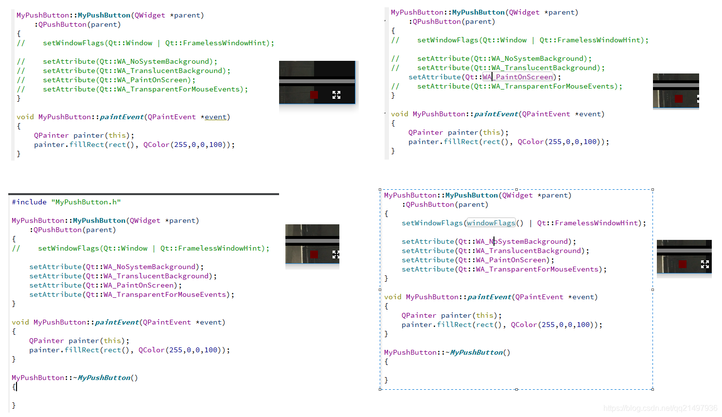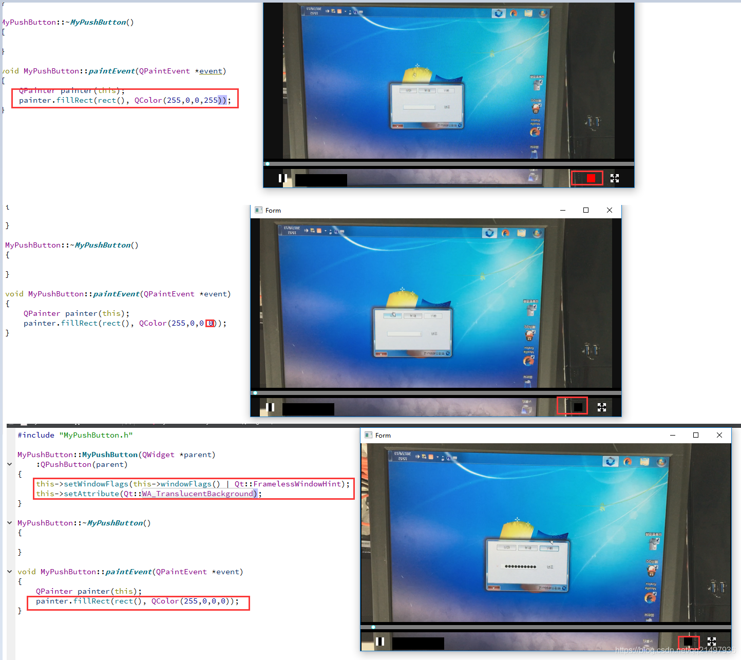 2.《Qt实用技巧:对QPushButton(等类似透明有黑色背景的QWidget实现透明/半透明的方法》