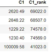 # 排序特征 df['C1_rank'] = df['C1'].rank(ascending=0, method='dense') df.head()