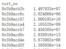 # 自定义分组聚合统计函数 def x2_sum(group): return sum(group**2) df.groupby('cust_no').C1.apply(x2_sum)